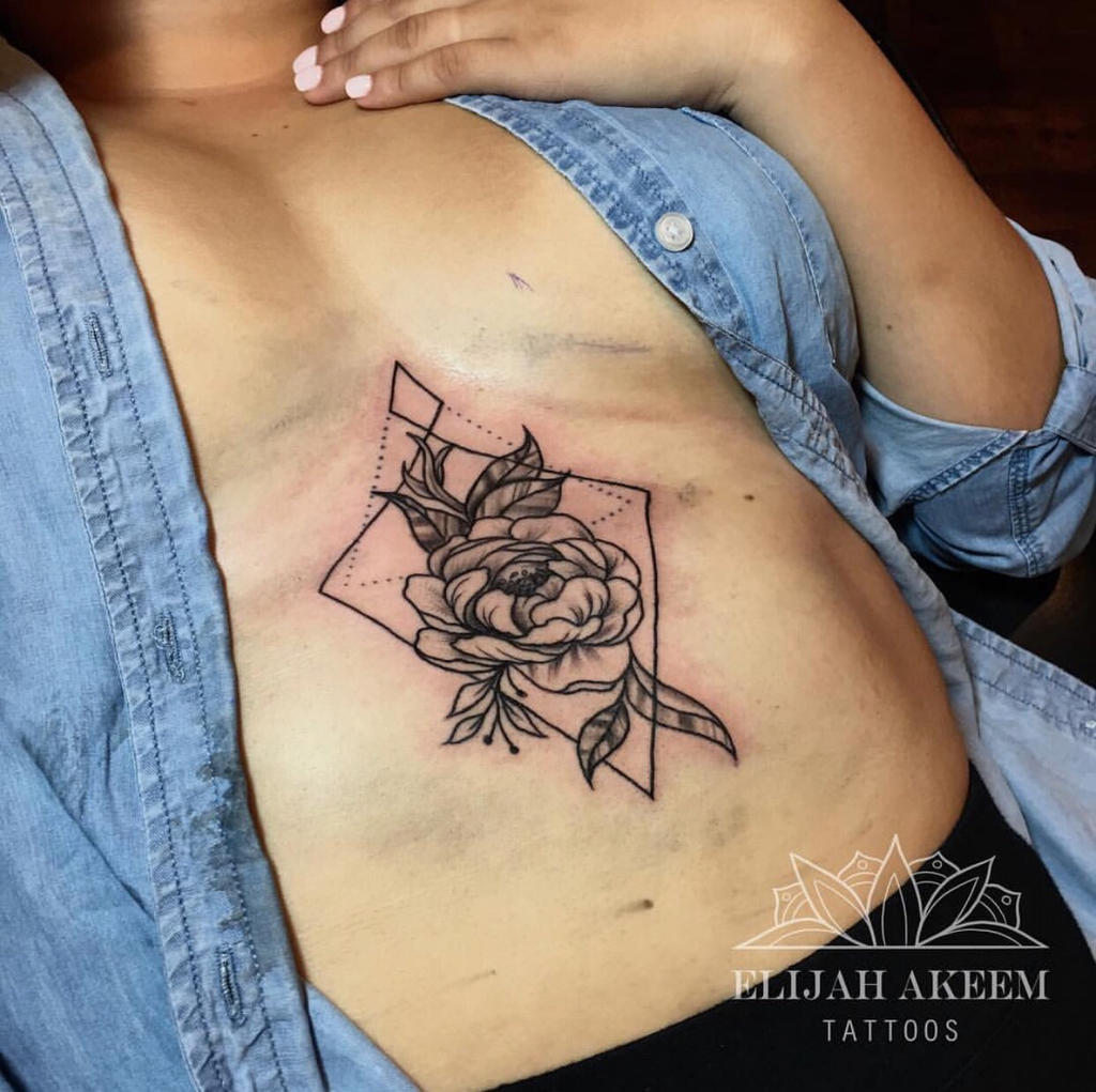 Geometric Peony Sternum Tattoo By Elijahakeemtattoos On Deviantart